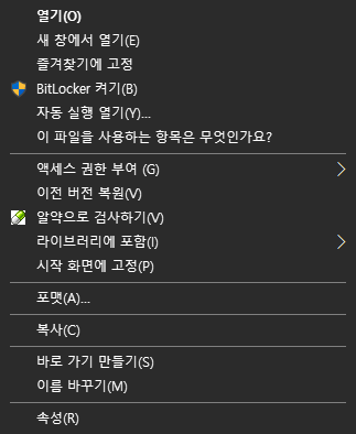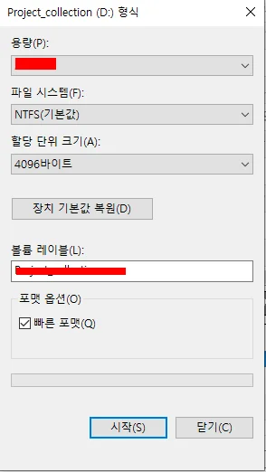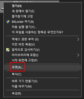 - ํด๋น ๋์คํฌ์์ ๋ง์ฐ์ค ์ค๋ฅธ์ชฝ ํด๋ฆญ > ํฌ๋งท ์ ํ > ์ค์ ๊ฐ ์ ํ > ์์