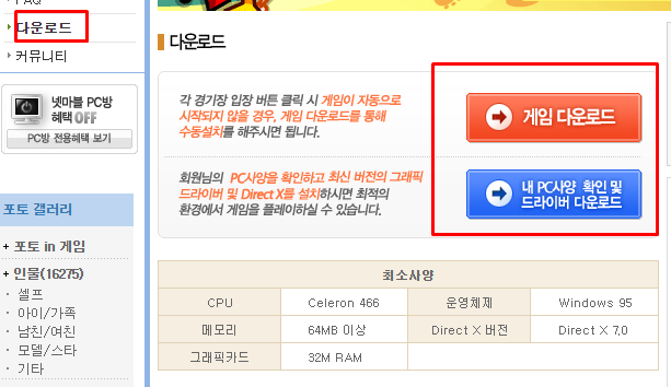 ํํ์ด์ง์์๋ ์ฌ์ด๋๋ฐ์ ํ์ํ ๊ธฐ๋ฅ์ ์ฐพ์ ์ ์๋๋ก ์ง์ํ๊ณ ์์ต๋๋ค. ํด๋น ๋ฉ๋ด์๋ '๊ฒ์์์', '๊ฒ์์๋ด', '์ ์ ์๊ฒฌ', 'FAQ', '๋ค์ด๋ก๋', '์ปค๋ฎค๋ํฐ'์ ํฐ ๋ถ๋ฅ๊ฐ ์์ผ๋ฉฐ, ํ์์ ๋ฐ๋ผ ํ์ ๋ฉ๋ด๊ฐ ์์ต๋๋ค. ์ฌ๊ธฐ์ ๋ค์ด๋ก๋๋ฅผ ์ ํํ์๋ฉด ๊ฒ์์ค์น๋ฅผ ํ ์ ์์ต๋๋ค. ๊ฒ์ ์ค์น๋ฅผ ์ํด์๋ ๋ก๊ทธ์ธ์ด ํ์ํฉ๋๋ค.