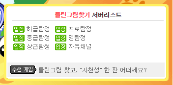 ํ์ฌ ์ด์๋๋ ์๋ฒ์ ์ข ๋ฅ๋ 6๊ฐ๊ฐ ์์ต๋๋ค. 'ํ๊ธ', '์ค๊ธ', '์๊ธ', 'ํ๋ก', '๋ช ํ์ ', '์์ '์ 6๊ฐ ์๋ฒ ์ฑ๋์ด ์ด์๋๊ณ ์์ต๋๋ค. ์ํ๋ ์๋ฒ๋ฅผ ์ ํํ ํ, ๋ก๊ทธ์ธํ์ฌ ๊ฒ์์ ์ฆ๊ธธ ์ ์์ต๋๋ค.